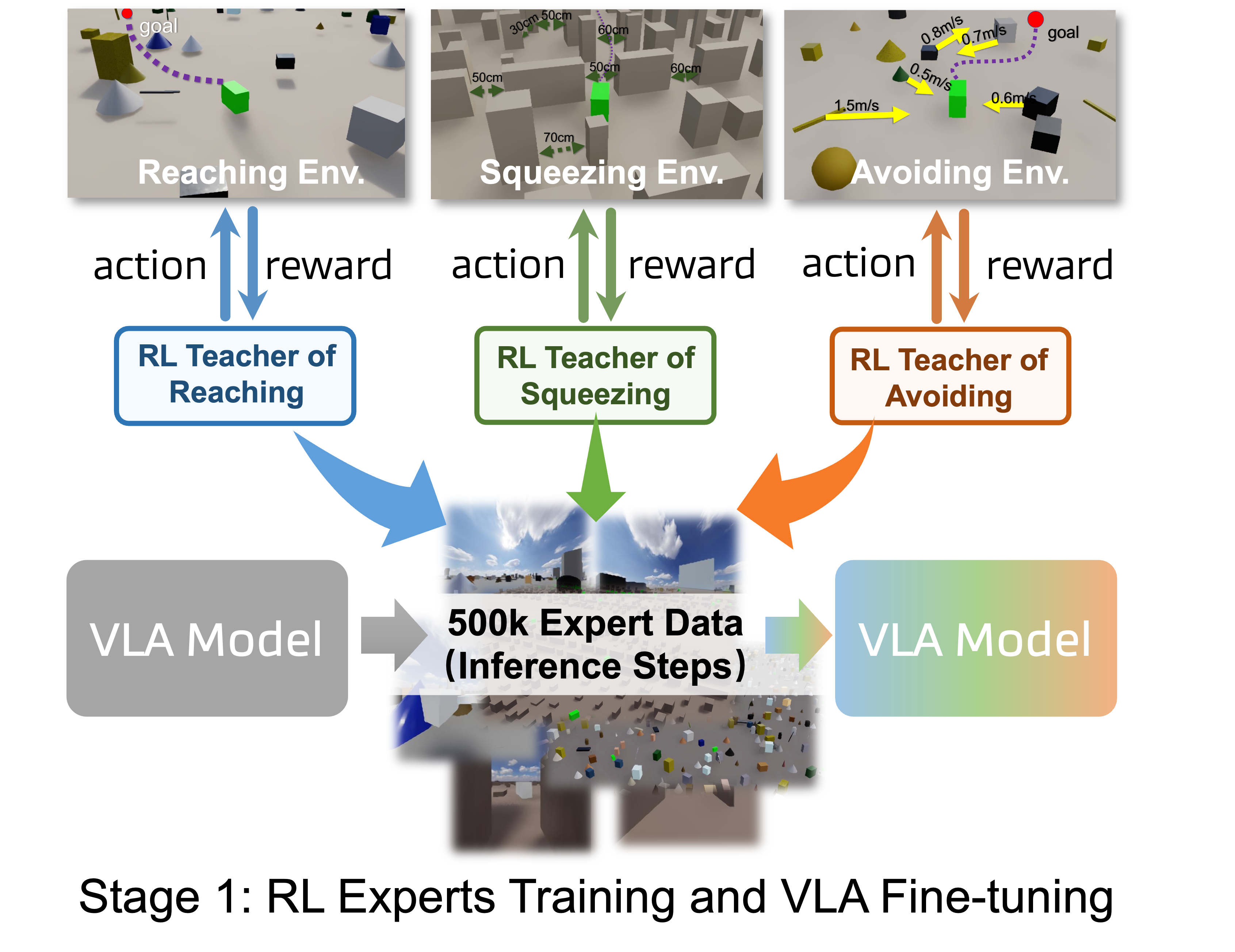 foundation models. For large-scale navigation data, we collect expert data from three reinforcement learning (RL)